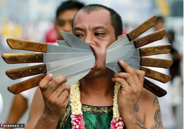 این جشنواره که حدوداً ۹ روز در ماه اکتبر برگزار میشود، یکی از مهمترین مراسم مذهبی تایلند بهشمار میرود و ریشه در باورهای تائوئیستی دارد. شرکتکنندگان در این جشنواره با رعایت رژیم گیاهخواری سخت و خودداری از مصرف گوشت، به پاکسازی جسم و روح خود میپردازند. اما چیزی که این جشنواره را واقعاً شگفتآور و عجیب میکند، آیینهای ویژهای است که برخی شرکتکنندگان برای اثبات ایمان خود انجام میدهند.