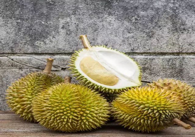 دوریان یکی از میوههای خاص و پرطرفدار تایلند است که به «پادشاه میوهها» معروف است. طعم آن ترکیبی از شیرینی و بوی قوی است که برخی آن را ناخوشایند میدانند. این میوه دارای پوست سخت و خاردار و گوشتی خامهای و زردرنگ است. دوریان حاوی مقدار زیادی ویتامینهای C و B و همچنین مواد معدنی است که به تقویت سیستم ایمنی و بهبود سلامت پوست کمک میکند. در بازارهای محلی تایلند، این میوه به شکل تازه یا خشکشده و حتی در برخی دسرها نیز عرضه میشود.