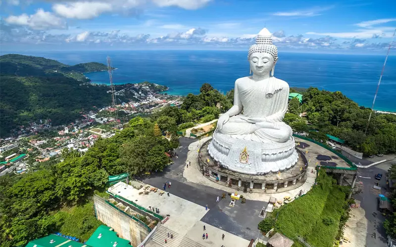 معبد بودا براBig Buddha : این معبد بزرگ در قله تپه ای واقع شده است و از بالا منظره ای فوق العاده از جزیره پوکت فراهم میکند.