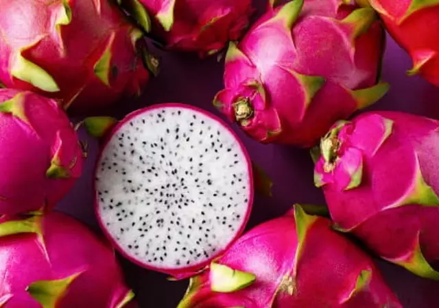 درگون فروت، که به دلیل ظاهر زیبا و پوست صورتیاش شناخته میشود، دارای بافتی سفید یا قرمز با دانههای سیاه است. این میوه طعمی ملایم و کمی شیرین دارد و برای تهیه سالادهای میوه و نوشیدنیها بسیار محبوب است. درگون فروت غنی از فیبر، آنتیاکسیدان و ویتامین C است و به تقویت سیستم ایمنی و بهبود هضم کمک میکند. این میوه، به دلیل کالری کم و مزایای سلامتی، برای افرادی که به دنبال رژیم غذایی سالم هستند، گزینهای عالی محسوب میشود.